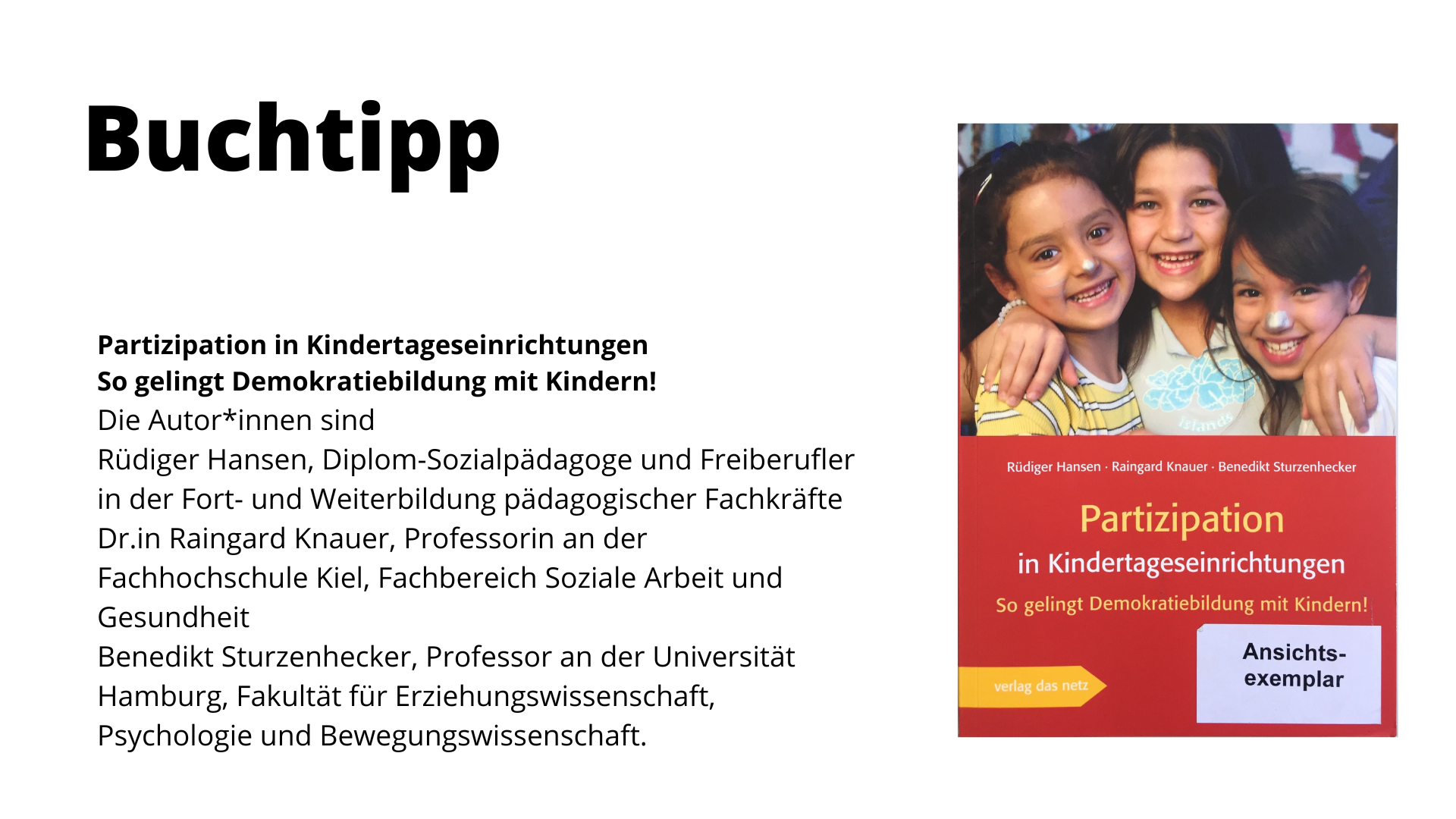 - Rüdiger Hansen, Diplom-Sozialpädagoge und Freiberufler in der Fort- und Weiterbildung pädagogischer Fachkräfte
