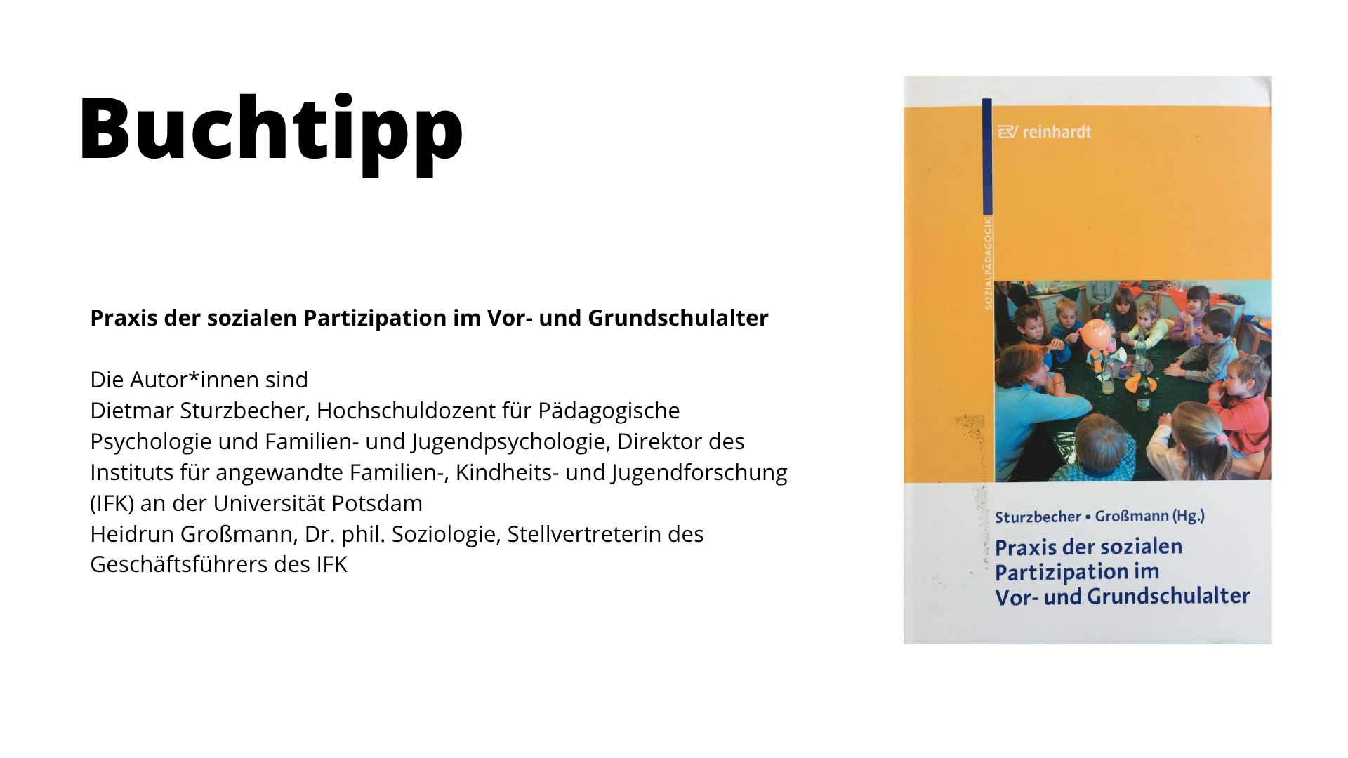- Michael Regner, Diplom-Sozialpädagoge mit langjähriger Erfahrung in der Kinder- und Jugendarbeit, Fortbildner und Fachberater in Kitas